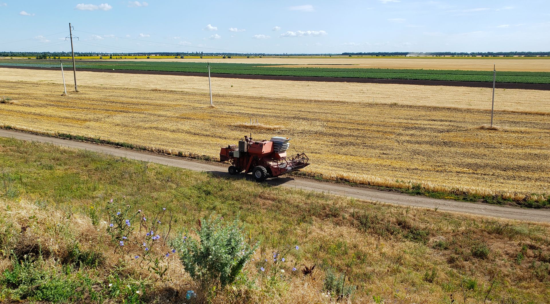 Через день ми подолали 170км. Їдучі полями-степами ми побачили 40 річний комбайн "Нива", я такі бачив в дитинстві в моєму букварі)