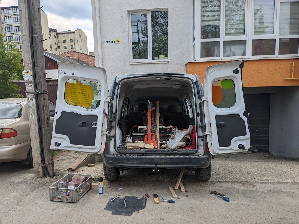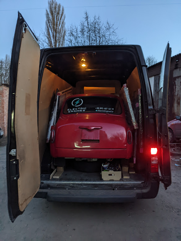 Через 2 месяца, вёз бусом гуманитарку в Киев с другом, а на обратном пути решили своим ходом гнать мою кенгу электро, батарею на которую я собирал за 2 дня (это уже другая история), а в бус засунули Горбик и картины с галереи.
