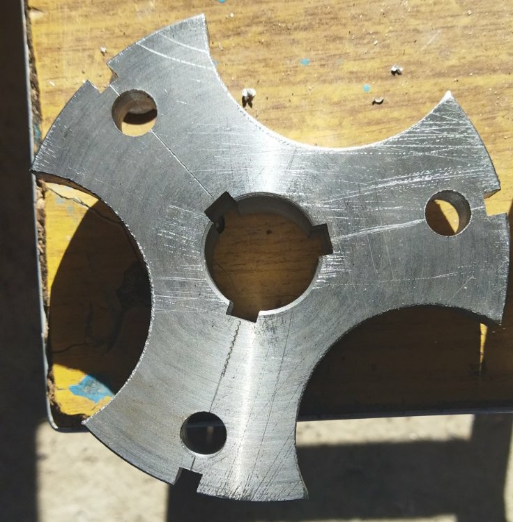 Фланец отменяется. Точнее отменяется вазовский. Тому причин не мало. Одна из них это полый вал и было решено оставить его в покое, но надолбать пазы под шпонку и нарезать резьбу под гайку. На том и порешали))) Размеры фланца меряли по родному, толщина лап осталась как в родном. Скорее всего надо будет подрезать резьбу вала после того как закрутится гайка но это будет видно по месту.