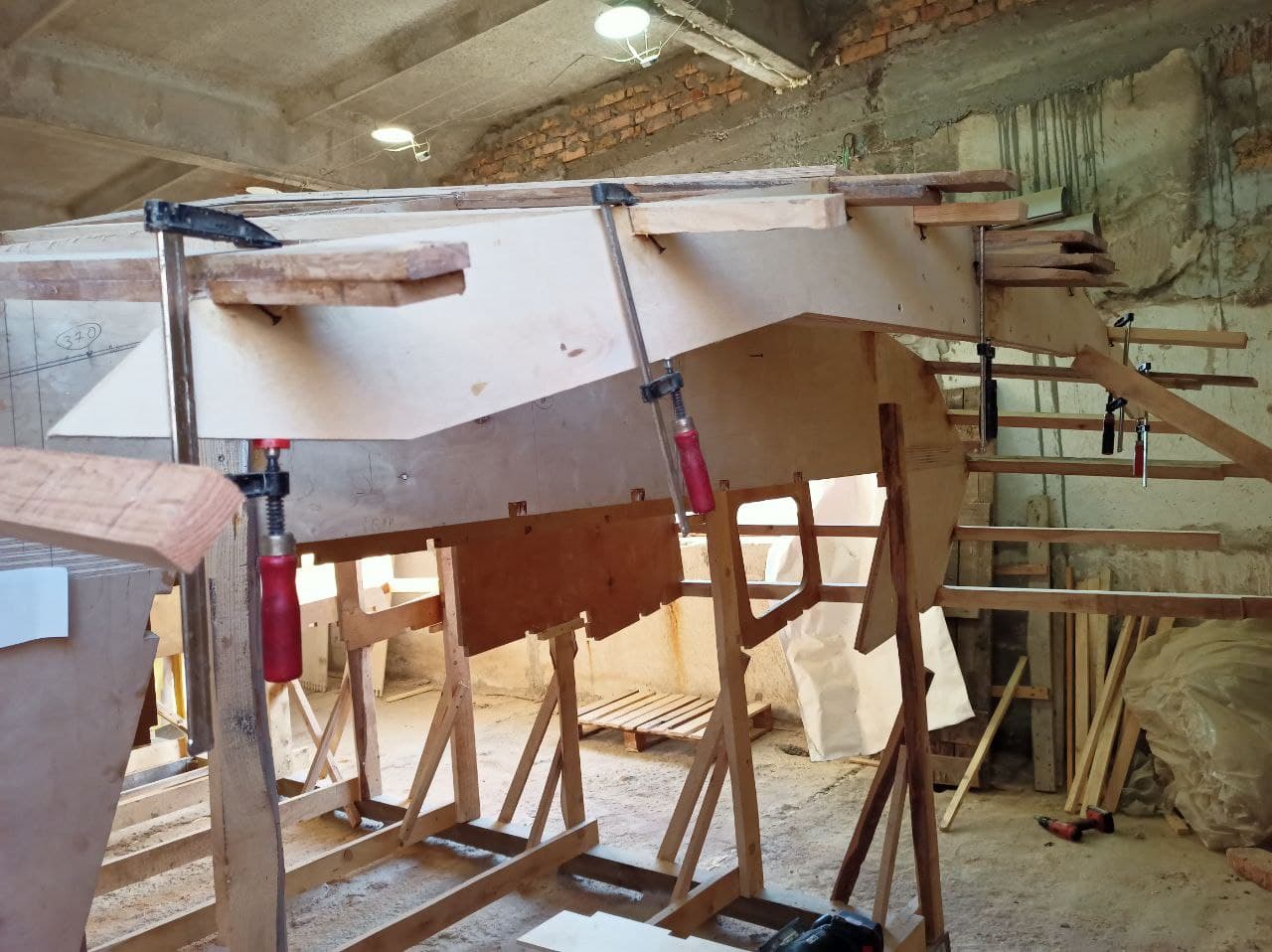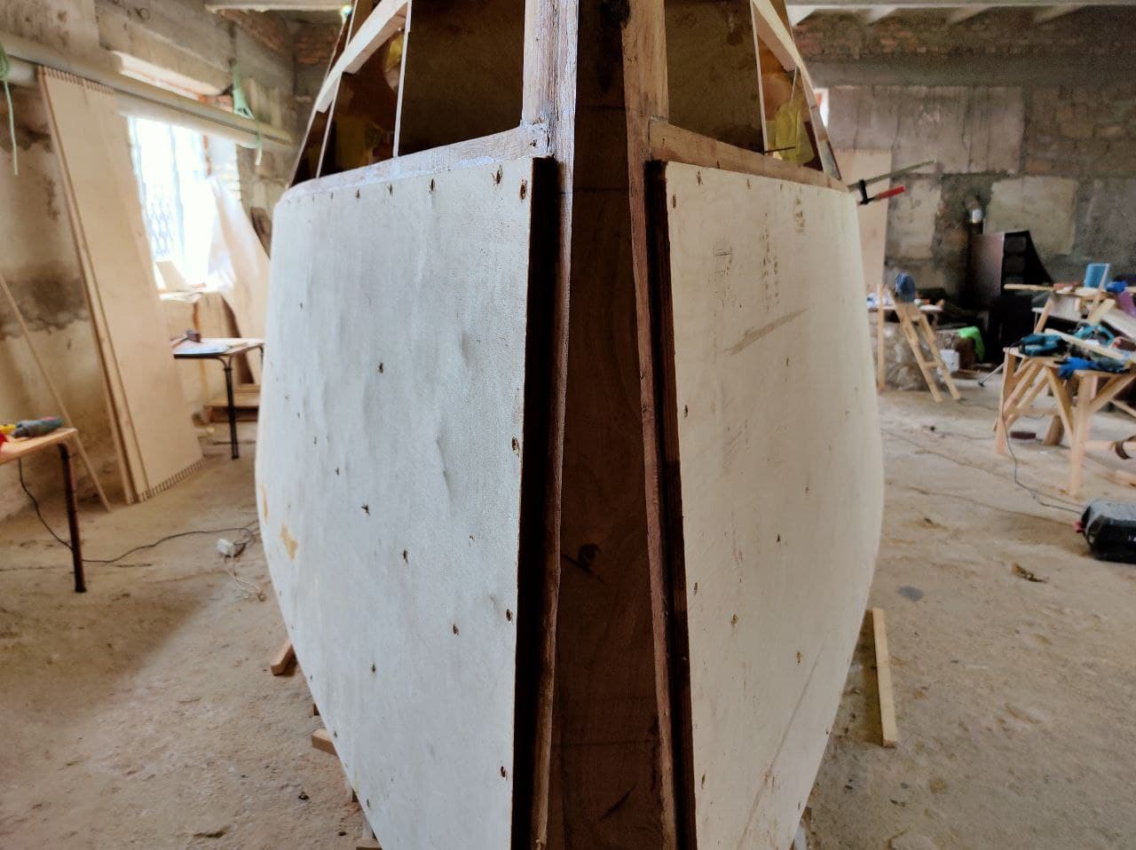 Один стандартный лист фанеры 12мм 2500 х 1250 мм весит примерно 25-27 кг. Чтобы загрузить ЧПУ надо было привезти 30 листов. До сих пор помню как надо было это все несколько раз перетащить: до грузовика, загрузить его, потом разгрузить на ЧПУ, перетащить до склада на ЧПУ. В общем постройку лодок 10м+ рекомендую делать по возможности не в одни руки для получения большего удовольствия, особенно когда касается габаритных кусков обшивки, килевой балки и т.д.