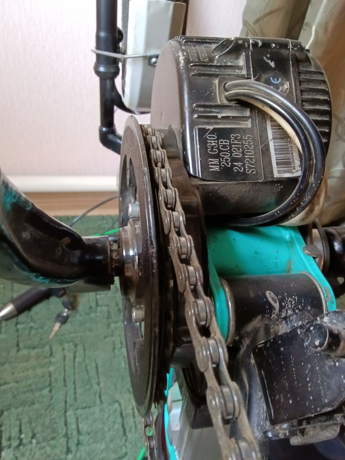 На фото є: мотор з ОЛХ за 2500грн. + контролер за 620грн. та ручка "газу" 400грн. Це для "пенсійного/жіночого" вєліка)