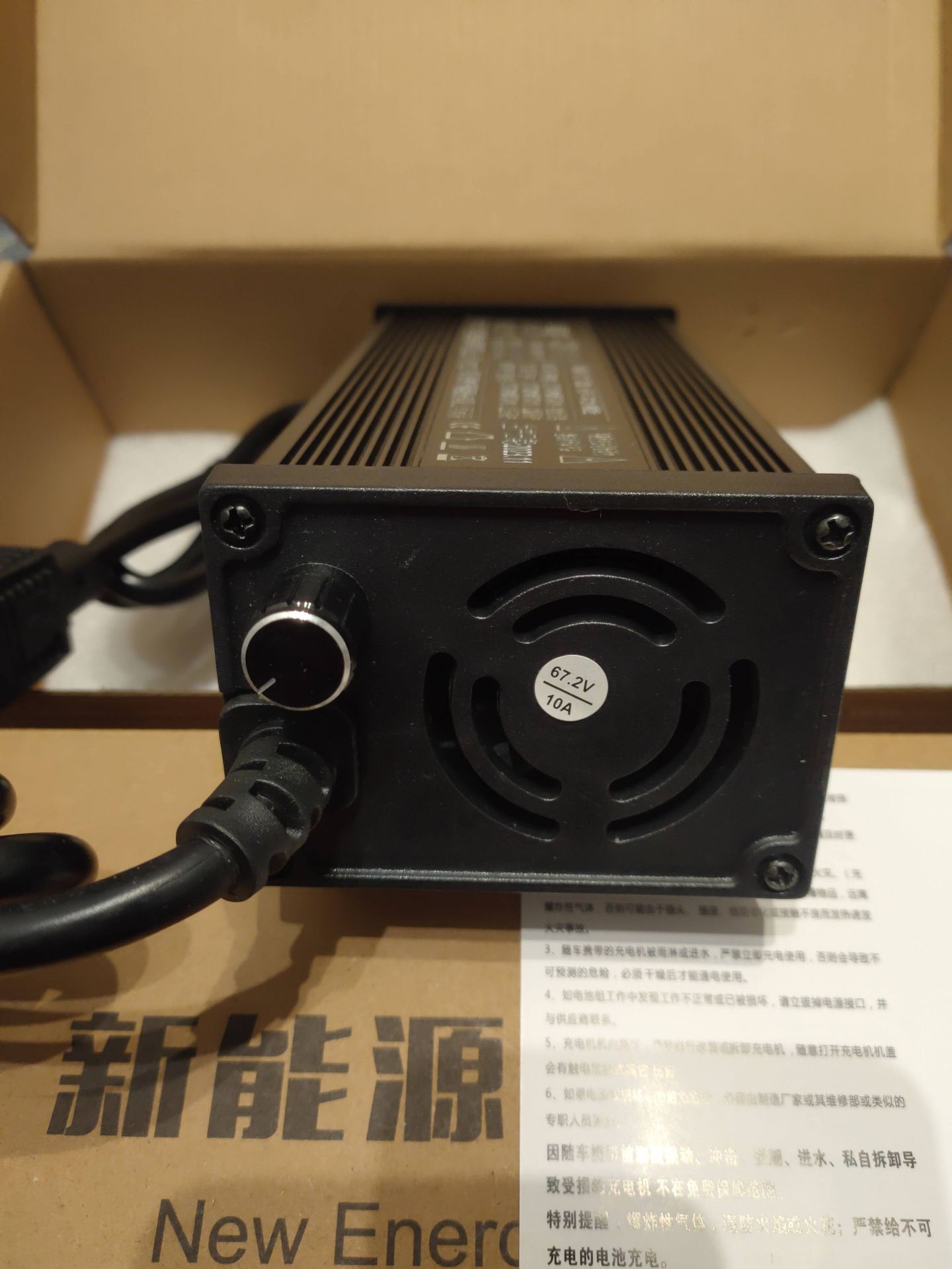 Новое зарядное устройство для электротранспорта с питанием батареи 60 Вольт 16S (в полном заряде 67.2 вольта) с возможностью регулировки по току от 1 до 10 Aмпер максимум 670 Ватт. Имеет систему охлаждения в виде вентилятора, корпус алюминиевый. Зарядное устройство имеет дисплей в виде показателей тока, вольтажа и уровня зарядки батареи. Ручка регулировки тока от 1 до 10 Ампер. Питание универсальное от сети 180-240 вольт в комплекте качественный Евро переходник под все типы вилок MarKen.