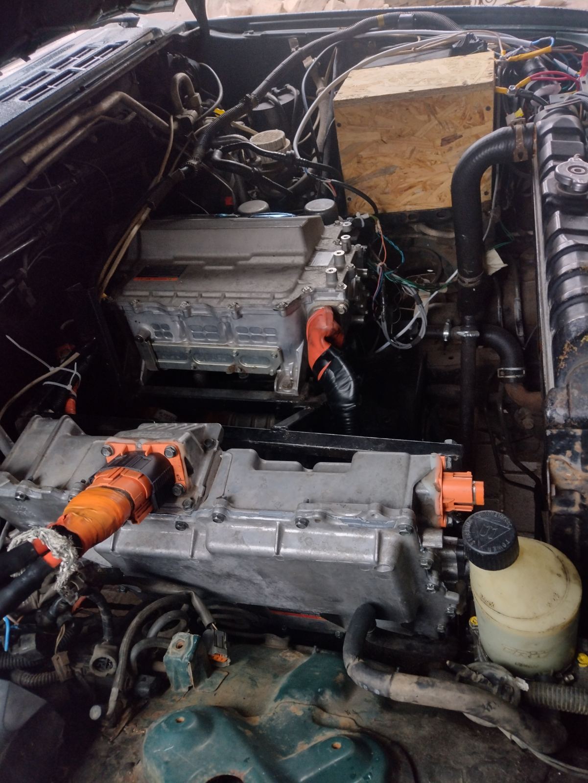 Давно мечтал об универсальном авто повышенной проходимости на электротяге, Pajero 2 мне всегда нравился и у меня их было много, поэтому выбор под свап пал не случайно. Мотор EM61, инвертор, дс-дс, от ниссан лиф, батарея 100s3p на lg chem E63, мотор установлен на МКПП через плиту, ЭГУР от астры, зарядное 3 шт от шеви вольт ( 10квт) TYPE 2. Результатом доволен.