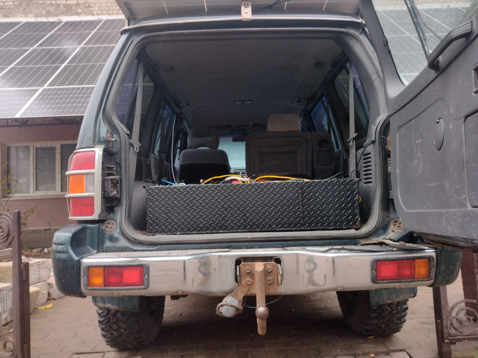 Батарея в багажнике вся, собрана в силовом корпусе, дабы при надобности можно было снять целиком, на перед поставлю лебедку 12000 и силовой бампер и будет все гут, да и сейчас не скажу что морда недогружена, по поведению ничем не отличается с двс паджеро, мощности хватает вполне, динамику не замерял , по ощущениям на уровне родной 3.0 л бензинки, мотор установлен на перемычку рамы через 2 нивовские подушки, плата в инвертор Андрея ака andy210, управление зарядкой его же, фоток сделаю чуть позже. расход по трассе 80-90 км\ч на 32 муд гудричах примерно 20-22 квт на 100 км.