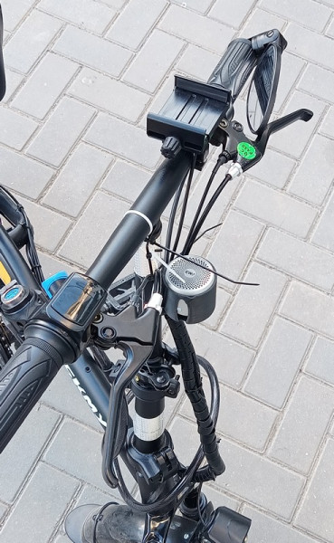 Ну а на моём велике — новая модификация: система VESS == "Virtual Engine Sound System" — распугиватель пешеходов! :maul: Bluetooth микро-колоночка EWA в напечатанном держателе на руль. Громкости хватает на несколько метров :pfeif: