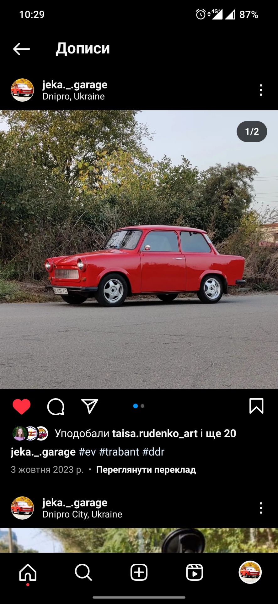 Нова ціна, 2000$ без батареї. У ціну входить трабант з електро документами, ліфовський привід на платі від Andy210, зарядка на 380В на базі 6 дельт з Type -2 та загальним роз'ємом на 5 пінів. Пічка фен дизельна китайська, музика, LED фари. Гальма і ступиці ВАЗ-2108, ковані диски БКМПО з зимовою і літньою гумою, зеркала від harley-davidson. Працюючі двірники, аварійка, сигнал і навіть ручник.