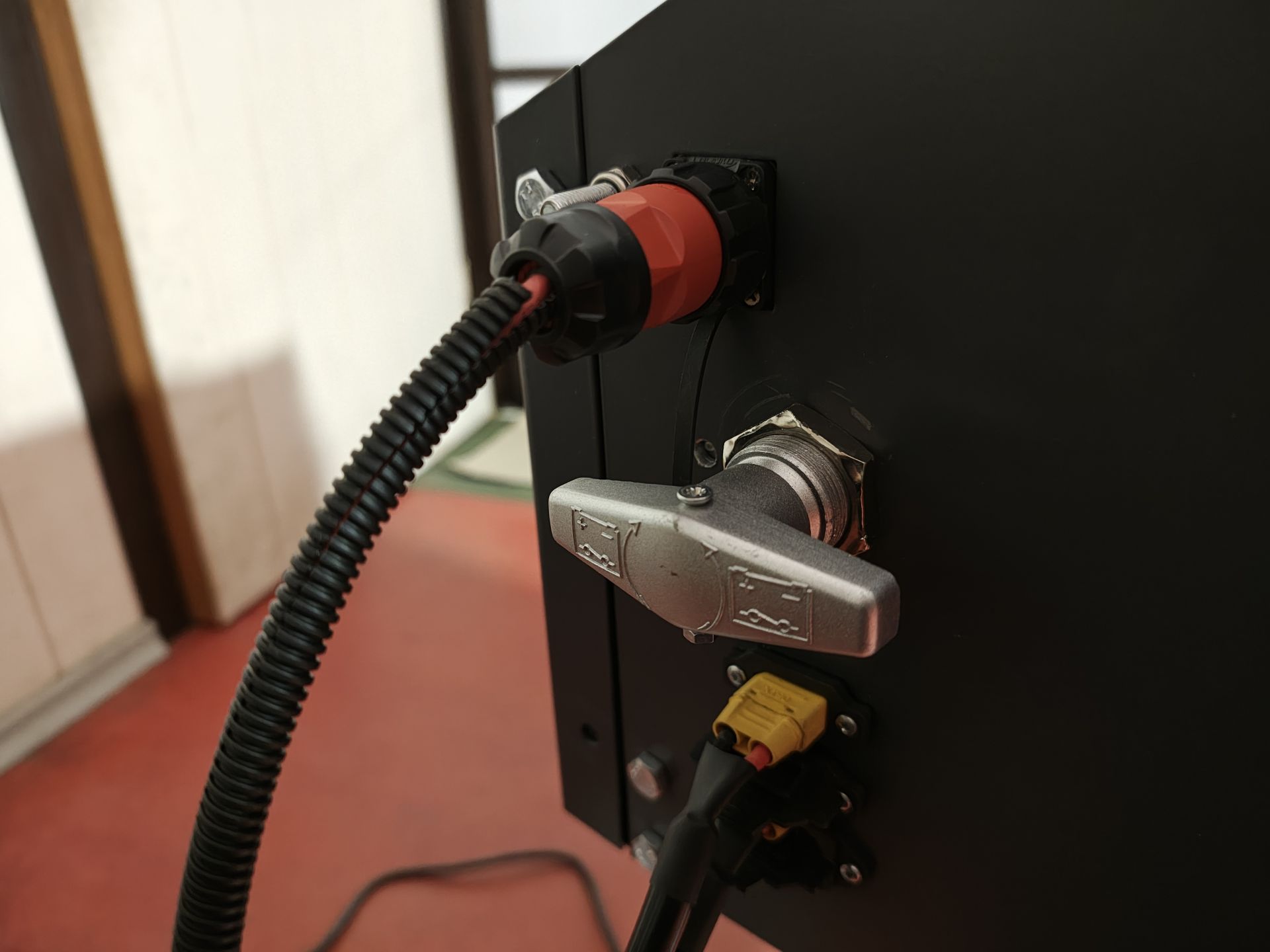 Зарядні пристрої винесені за межі підкапотного блоку. В цьому проекті я не використовую телеком блоки. Замість них будуть два ЗУ у герметичних корпусах на місці штатної батареї 12В. Батареї 12В не буде зовсім. Живлення бортових систем забезпечать пара паралельних герметичних dcdc 13.8V 30A. Інститут погодив таке технічне рішення. Вага підкапотного блоку разом з зарядними пристроями і двигуном на 20 кг перевищує сумарну вагу знятих з переду агрегатів . Конструкція блоку виконана з листового металу 2мм. Деталі виготовлені методом ЧПУ-лазерної різки/згину, пофарбовані порошком.