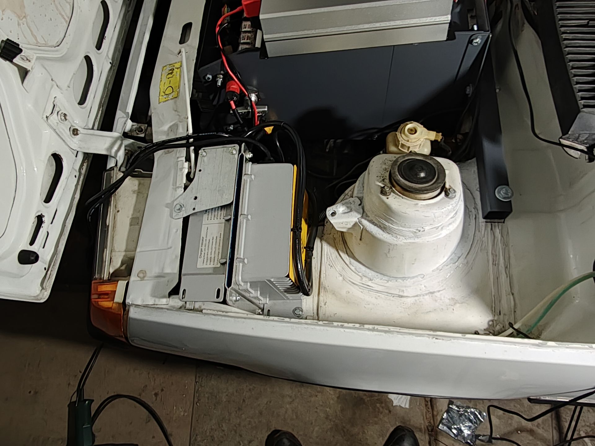 На пікапі колись батарея була спереду, але почало рвати метал передка, та і стійки з опорами довго не ходили. Зараз на всіх Тавріях батарея ззаду. viewtopic.php?f=26&t=1181&start=585#p133995 А что поменялось в конструкции с тех пор, вес китайского двигателя в 2 раза меньше чем дс 3.6? У меня тоже ведь в Таврии, недавно, была батарея под капотом 10кВтч (всего 70кг), но был вынужден перекинуть ее в багажник, чем очень доволен, передняя подвеска вернулась в нормальное состояние.