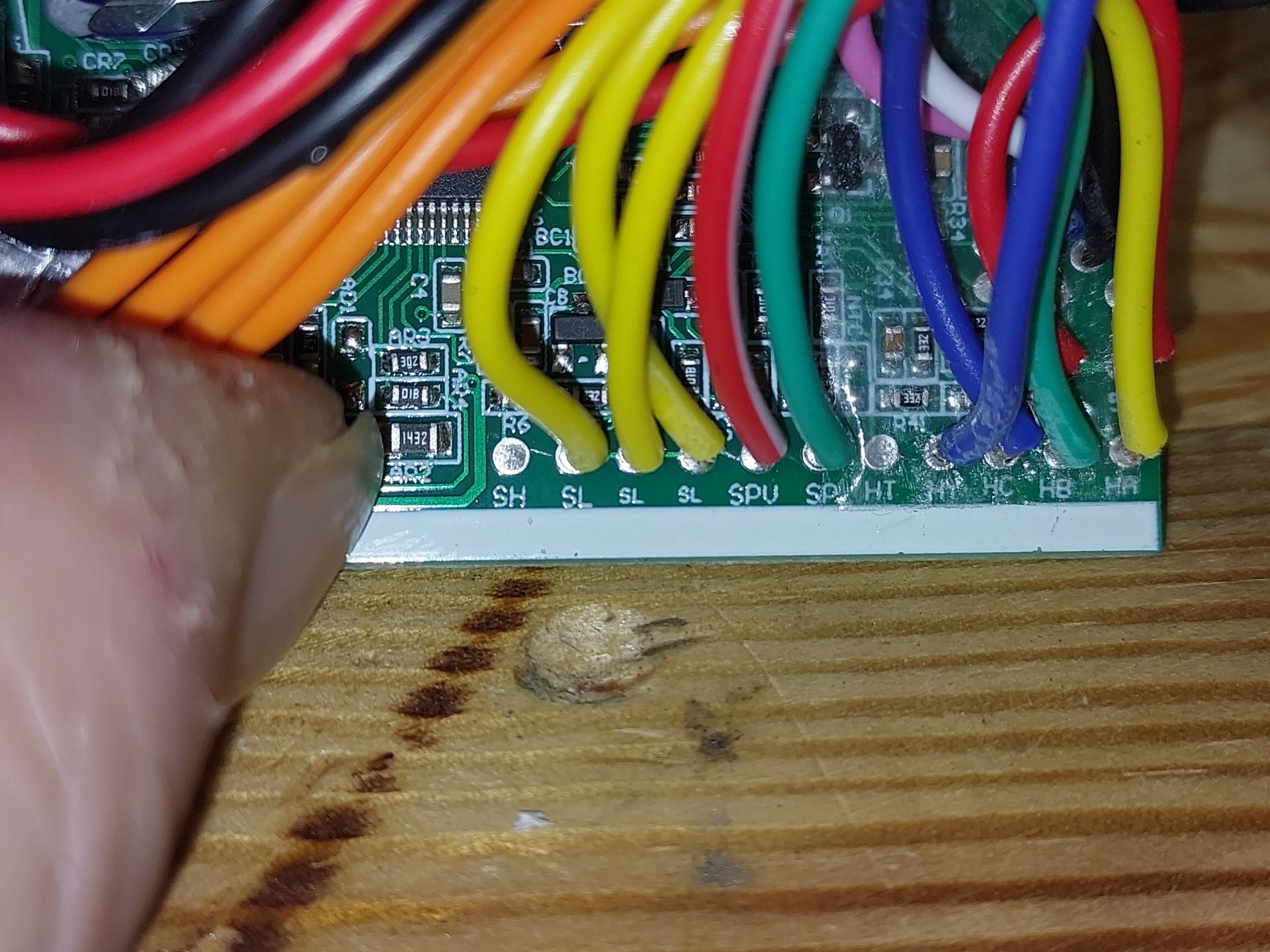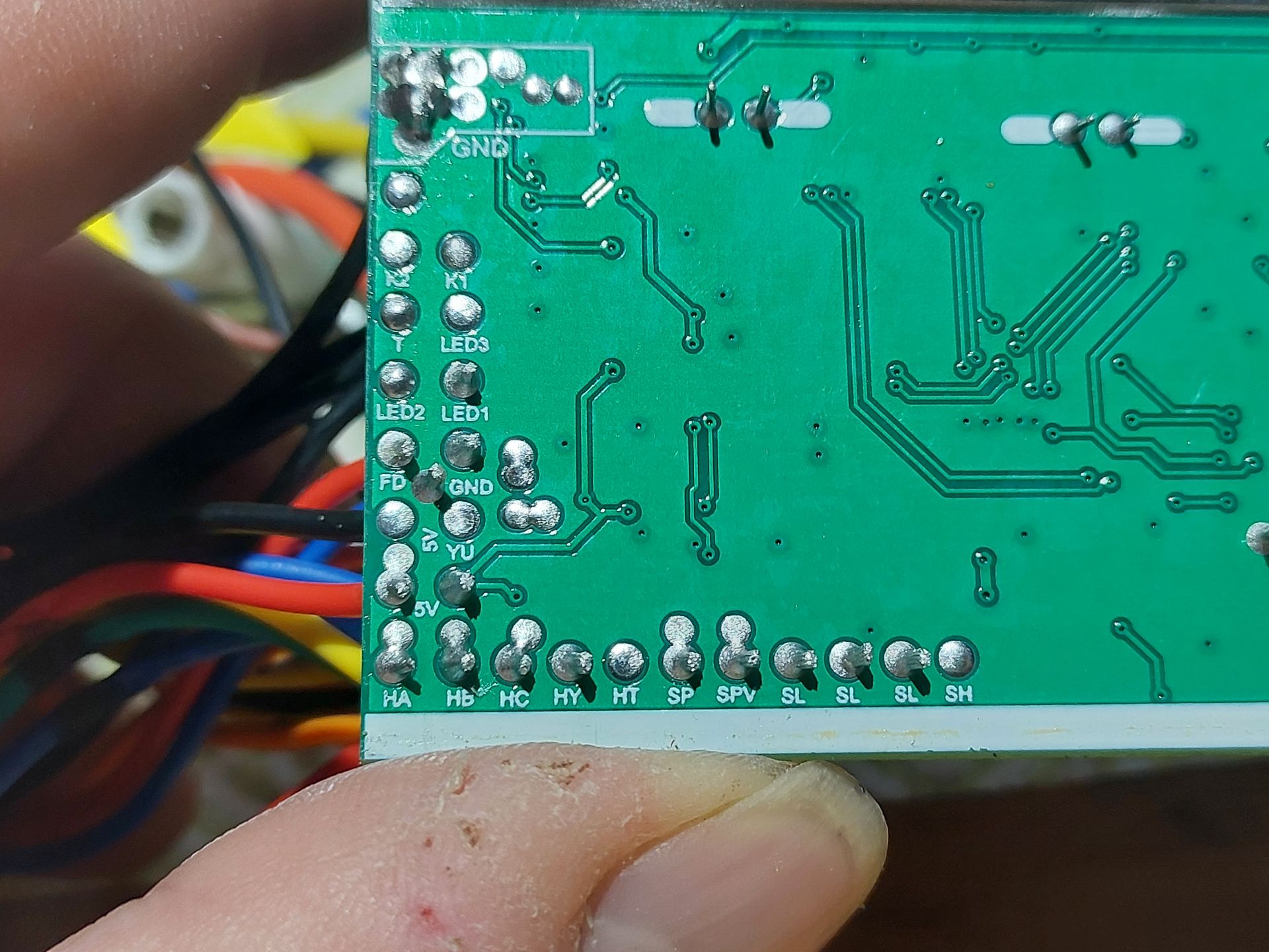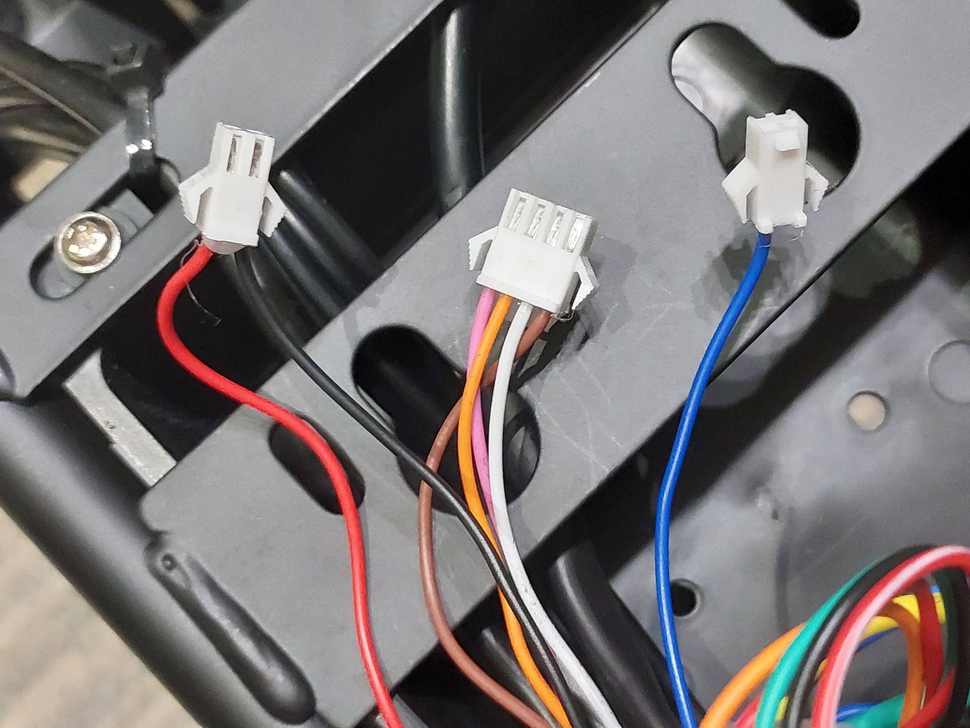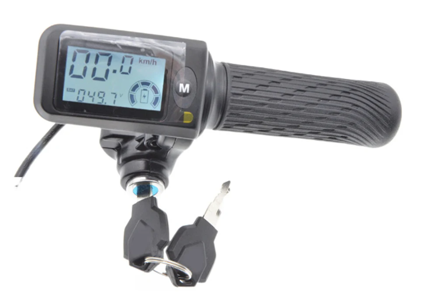 Чорний - мінус , червоний +5в(!!!), зелений - з датчика холла ручки на газ контроллера. Тут тільки живлення ручки газу, без екрану. Білий з жовтим - ключ запалення для контроллера, напруга батареї. Це живлення екрану. Білий - з батареї, жовтий - на кабель сигналу живлення контроллера. Окремий(коричневий) - фазний\холли датчик швидкості. Чорний і синій (у моєму випадку) - швидкості. Замикаються по черзі на землю при виборі швидкості на екрані.