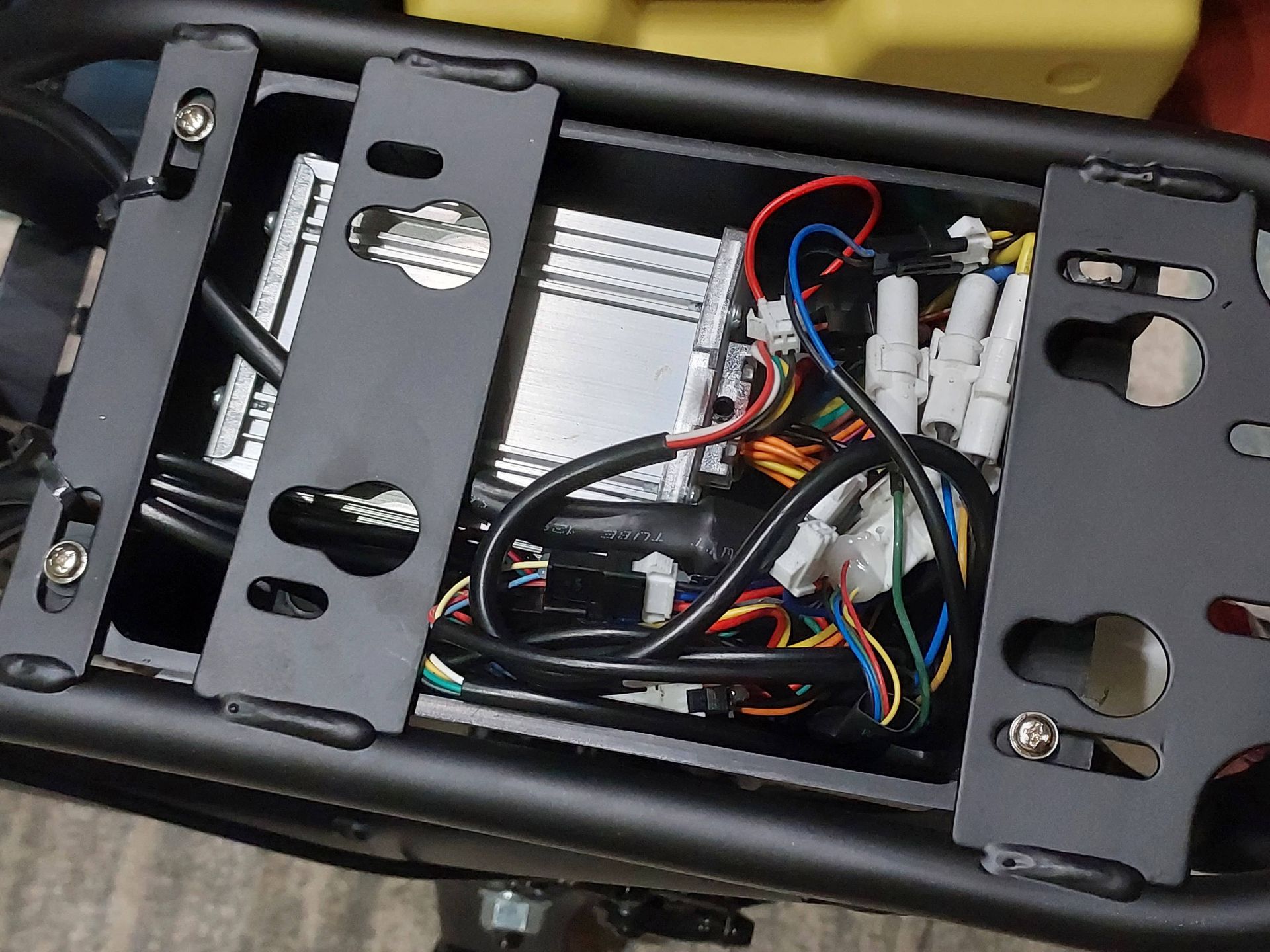 Чорний - мінус , червоний +5в(!!!), зелений - з датчика холла ручки на газ контроллера. Тут тільки живлення ручки газу, без екрану. Білий з жовтим - ключ запалення для контроллера, напруга батареї. Це живлення екрану. Білий - з батареї, жовтий - на кабель сигналу живлення контроллера. Окремий(коричневий) - фазний\холли датчик швидкості. Чорний і синій (у моєму випадку) - швидкості. Замикаються по черзі на землю при виборі швидкості на екрані.