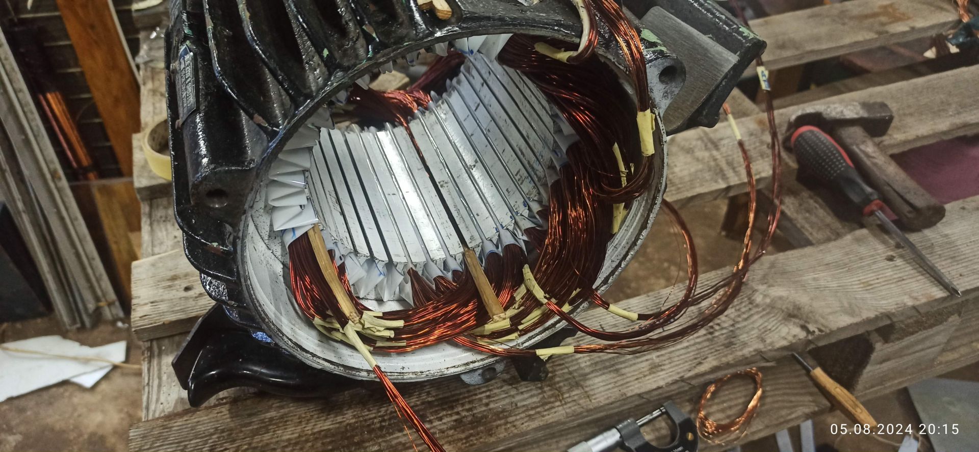 Разом з тим проводом що мені намотали перемотчики я в мотор вклав 7.8кг провода. Перемотчики на 48в намотали 38витків, я собі намотав 24, але переріз пполучилося збільшити в 4 рази від того яким мотали вони.