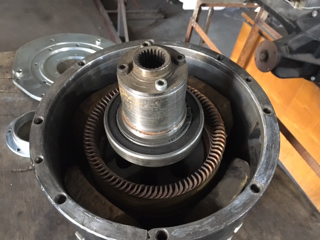 Передний роликовый подшипник заменён на шариковый большего диаметра. Ротор переточен. Вместо конуса втулка-переходник. Всё точилось в центрах. Биения отсутствуют.
