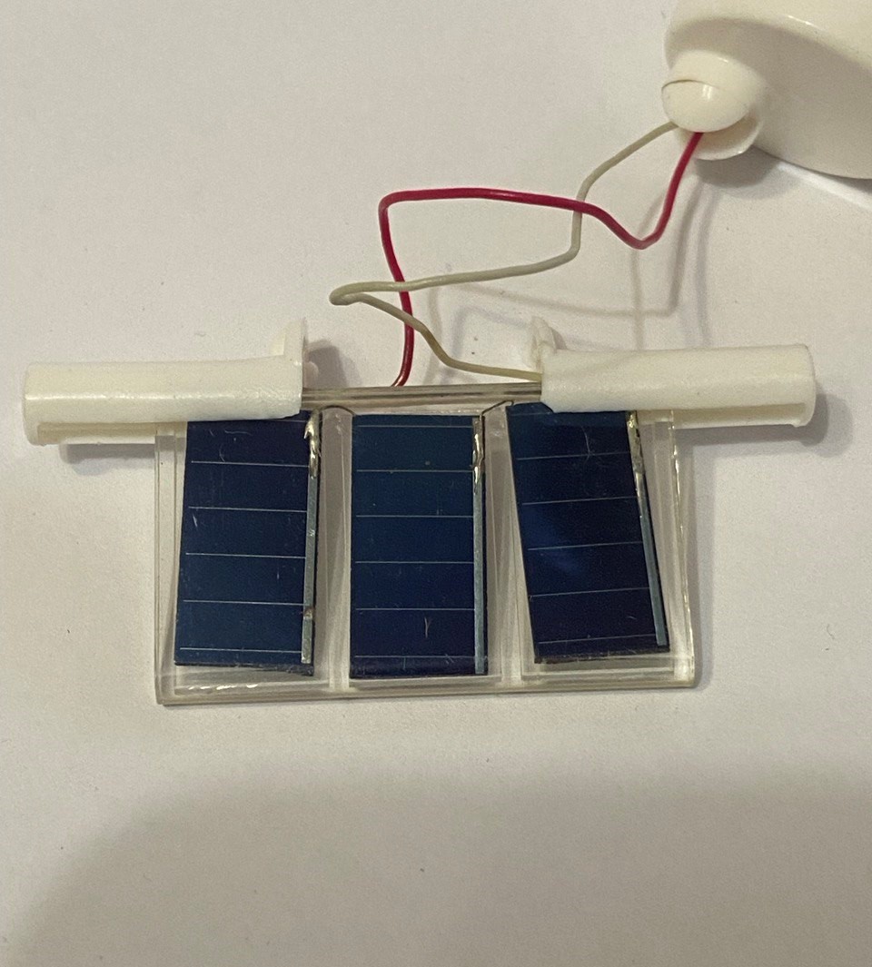 Більшість двигунів від довгого зберігання тяжко обертаються і мікроструми сонячної панелі не можуть провернути вал двигуна. Я витягнув двигун підважуючи тонкою викруткою по краях, медичним шприцем капнув масла на підшипники ковзання і все запрацювало. Для змазки заднього підшипника є маленький отвір для змазки, двигун розбирати не потрібно, передній підшипник доступний.