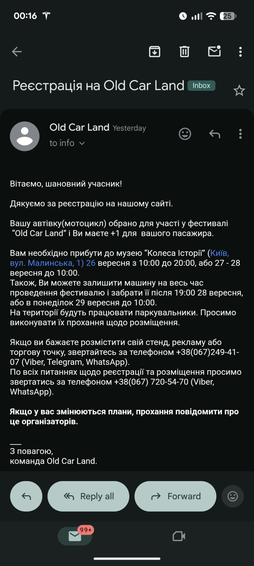 Заголовок повідомлення: Re: Old Car Land: 27-28.09.2025