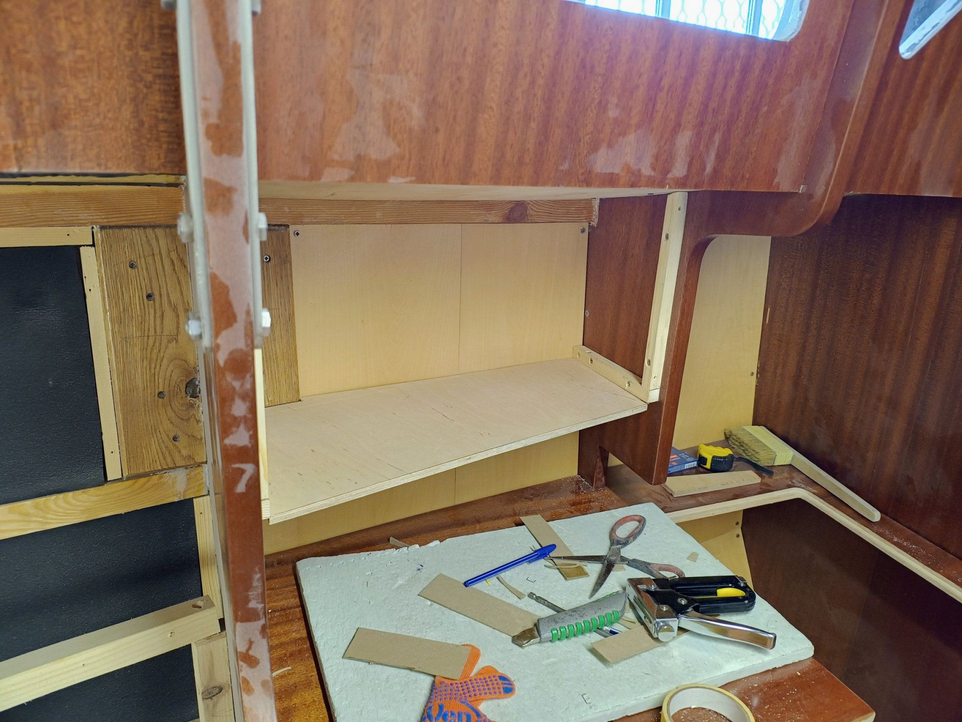 На фото вище також видно виготовлену та встановлену арку під сонячні панелі на кормі. Планується встановити 3 панелі по 400Вт - sunpower maxeon 3. В мене вже є досвід використаннях їх на меншій яхті - Подобалось що вони мають трохи менші розміри і вагу ніж в середньому, не подобалась їх ціна )