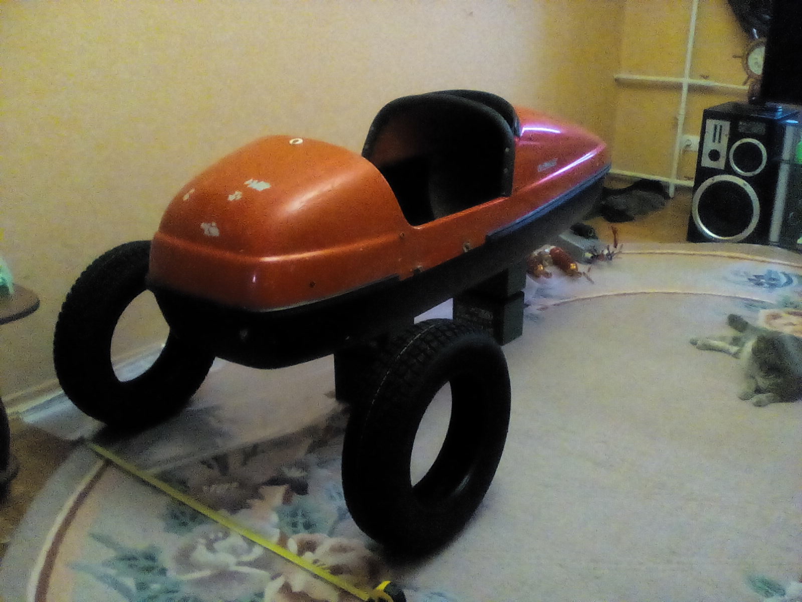 Продам трицыкл на базе скутера. Двигатель после кап ремонта Цузуки. Два передних колеса на подеске, с сиденьем буса. 2 места с переди и с зади. Модель самоделка, была отмечена по своим характеристикам в газете РИА 2005 года. С тех пор стоит законсервированная. Состояние отличное. Требует к своему вниманию человека способного добавить, немного умения и любви к не обычному творению. Необходимо продлить и подключить всю электропроводку ( имеется в комплекте) протянуть 4 троса тормоза и газ. Возможна двойная система управления, как ручная, так и ножная, с педалями тормозов. Зашить, пластиком корпус - верх и с переди. Необходимо сделать всего 5% от сделанного. Цена символическая 600 дол в надежные руки умельца.