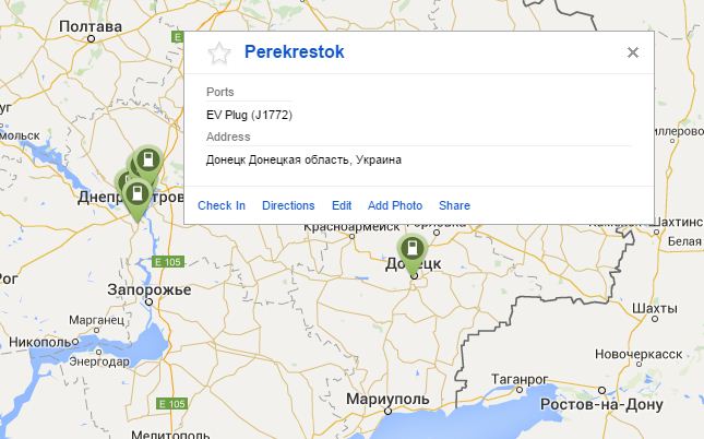 Сегодня 17.01.2016 на Плагшаре появилась отметка зарядной станции в Донецке !!!