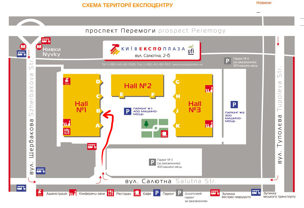 Павильон №1, Вход В - см файл "Kyiv ExpoPlaza.jpg"