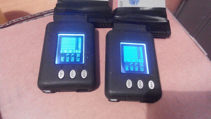 Сегодня продолжил балансировку батарей. Взял кума вместе с I-Maxом, поставили верхний порог Celllog на 4,2В, и начали заряжать батарею целиком. Те ячейки которые начали выходить за пределы - разряжали i-maxом, и когда большинство ячеек приблизилось к напряжению 4,2В, общую зарядку отключили, и заряжали каждую ячейку по отдельности, дотягивая ее до писка celllog при напряжении 4,2В. Итого успели до вечера отбалансировать 16 ячеек. Результат видно на фото. Когда подгоню остальные ячейки, хочу еще раз пройтись аймаксом, чтоб окончательно выровнять и буду разряжать.