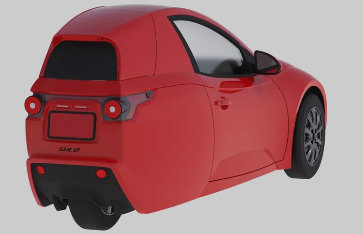 Electra Meccanica Solo имеет трёхколёсную конфигурацию: два колеса расположены в передней части, одно — сзади. Весит транспортное средство 450 кг.