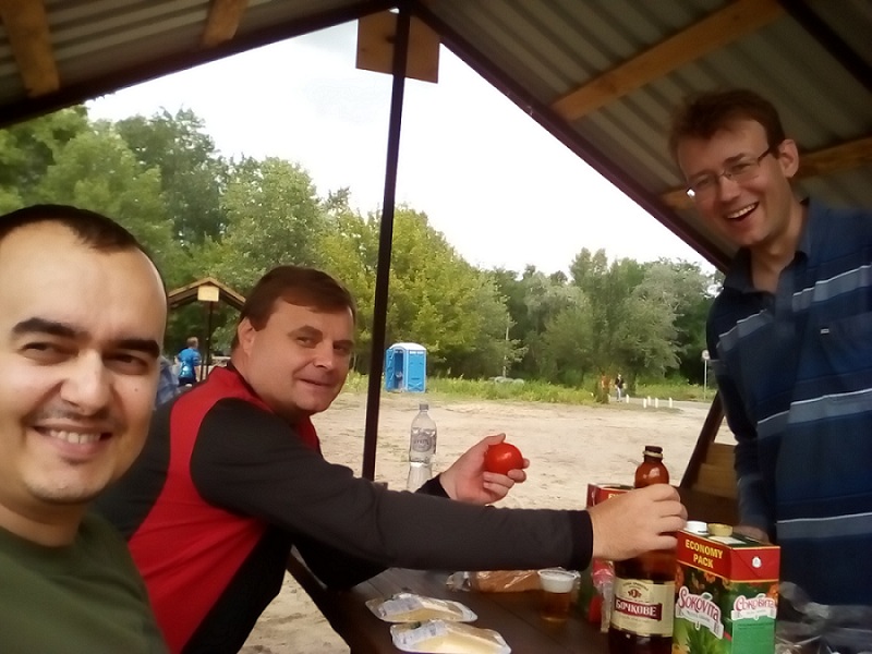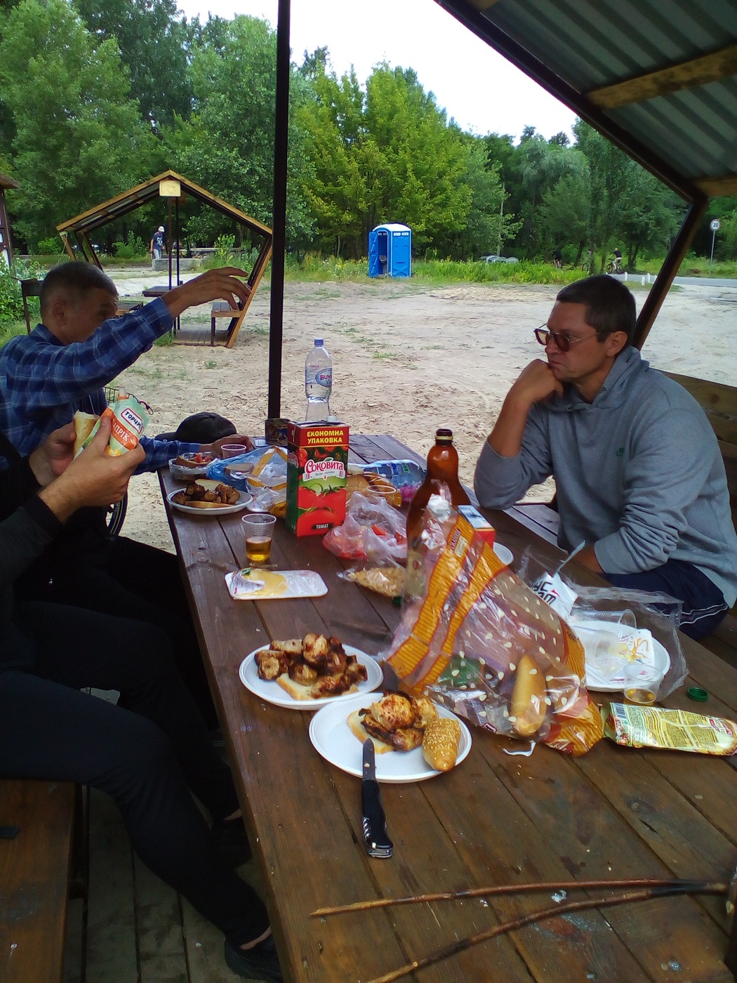 СМС-ки разослал вроди всем... Хорошо посидели, можно сказать экспресс-шашлык быстро нашли беседку, пока одни затаривались, другие запускали мангал. Неплохое место для встреч. Вопреки ГИСМЕТЕО, который обещал нам дождь утром и днем, было солнечно "сухо и комфортно". Парк Дружбы Народов и Труханов патрулируют велополицейские, сказали мне что их 10 челолвек, велы у них малоизвестного у нас производителя. Я только заметил что дисковые тормоза Тектро.