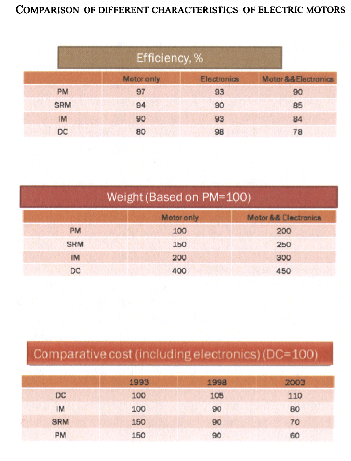 Сейчас все еще лучше обстоит ибо цены на неодимовые магниты прошли свой пик, который был в 2011 году и резко упали. Даже по стоимости двигатель с неодимками дешевле асинхронника".