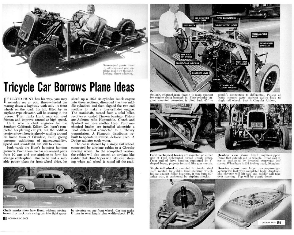 Popular Science march 1951-LLOYD HUNT.Tricycle Car Borrows Plane Ideas.JPG