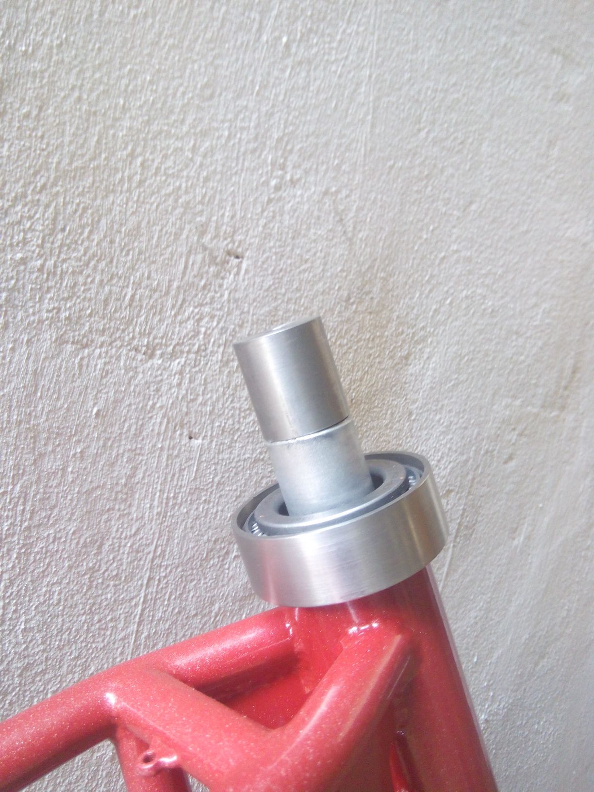 Вилка у нас з конусним штоком,тому вирішили самостійно виточити нижню і верхню чашки і встановити конічні підшипники.