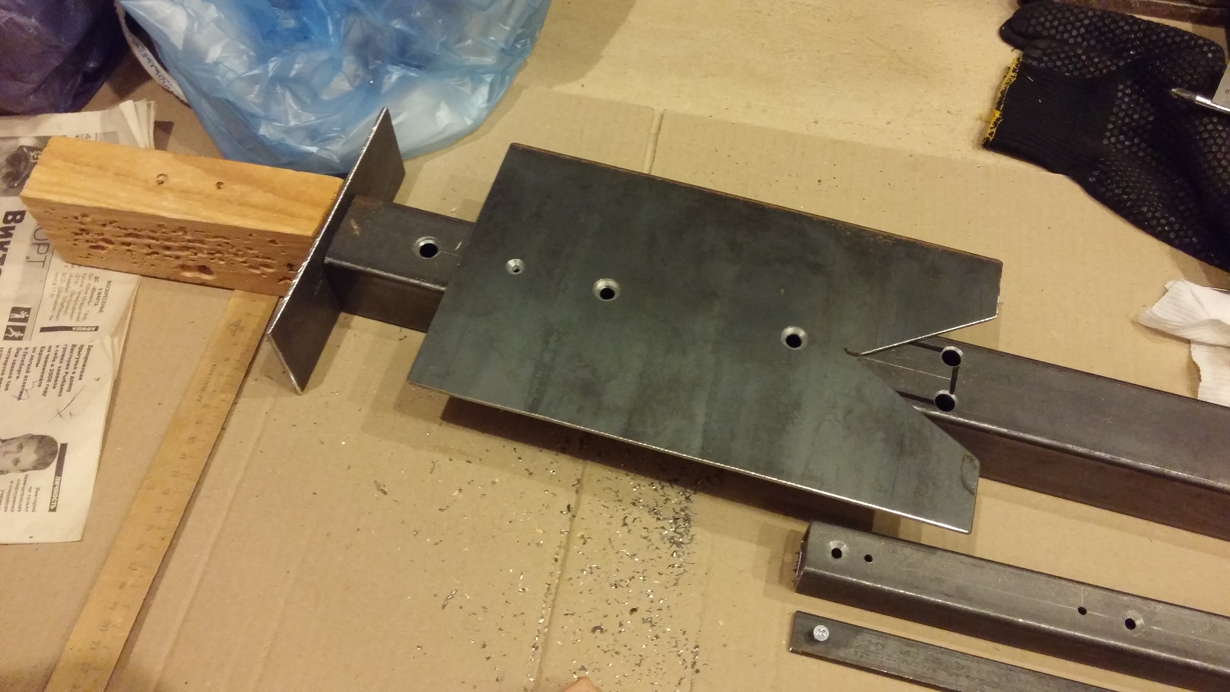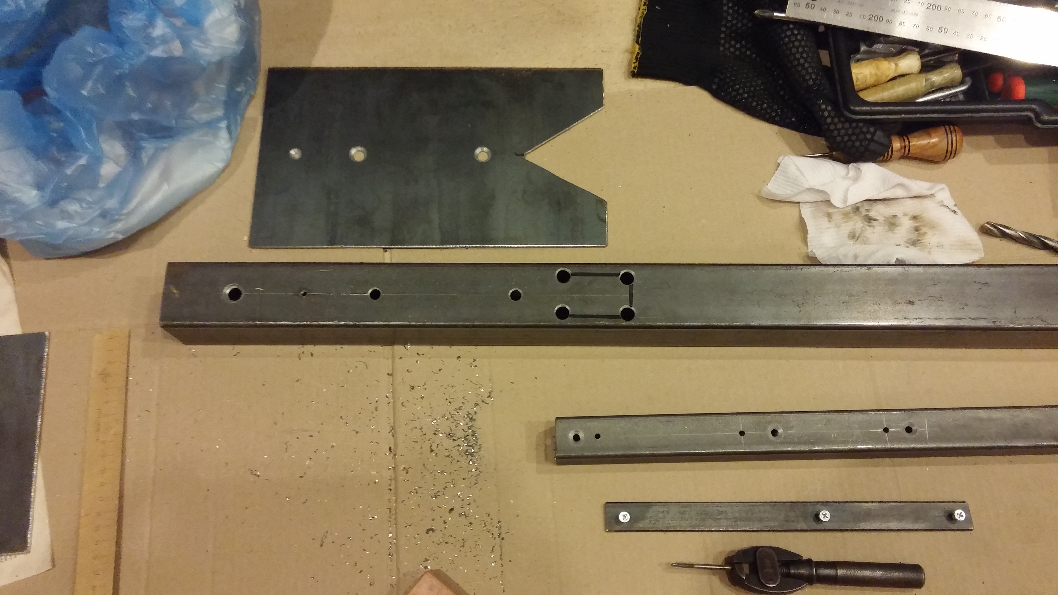 Дальнейший план действий: 16.08.2016 - вторник - продолжение сверления, нарезания резьбы и прочее. 17.08.2016 - среда - сварочные работы, и вечером - грунтовка. 18.08.2016 - четверг - утром покраска на первый слой, вечером - на второй. 19.08.2016 - пятница - просушка покраски. Суббота... Посмотрим...