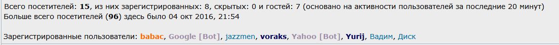 Вхожу на форум. Смотрю внизу, а там уже не 9 присутствует, а 7. Пролистал назад - пропал Yandex[Bot].