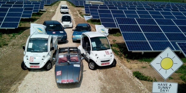 На фото : Зарядка электромобилей пробега, энергией Крымского солнца.
