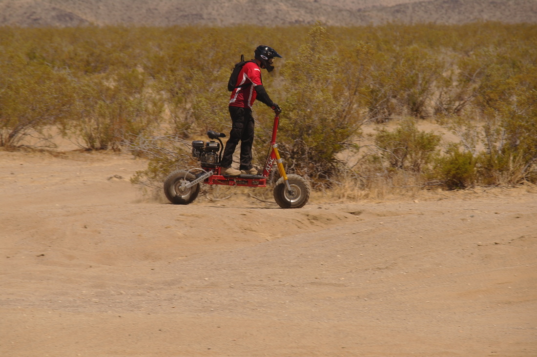Очень нравится такой самокат,только без бензина,с мопедным мотор-колесом кВт на 3.