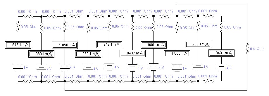 По идее , ток с каждого элемента должен быть одинаков ,но симулятор явно думает иначе.