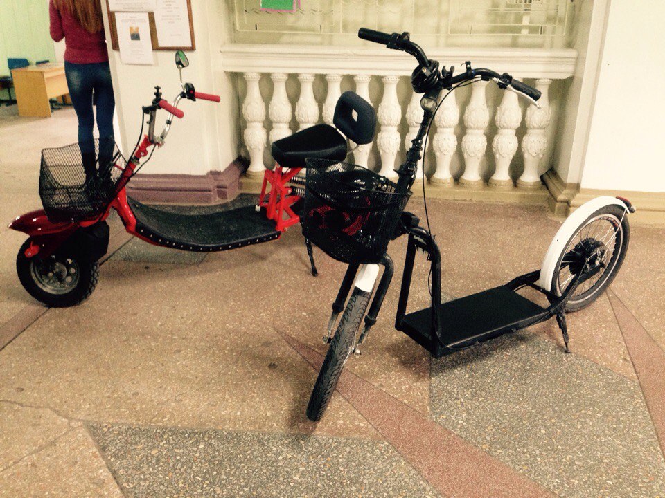 Пока что самокат на стадии сборки, но уже есть крылья, свет, корзина под багажник, управление на руле, замок зажигания, в планах установка съемного сиденья, ножки и порошковая покраска.