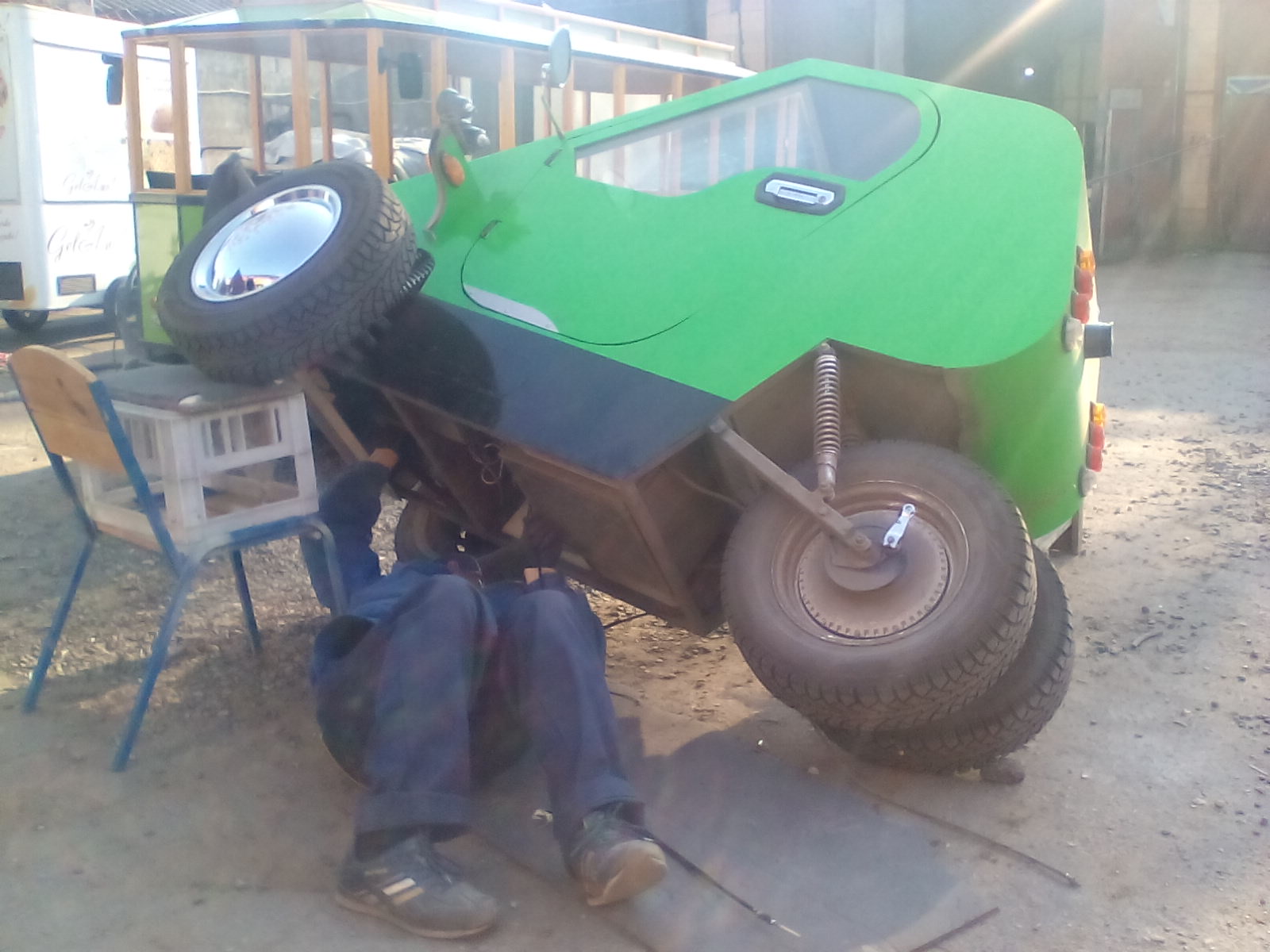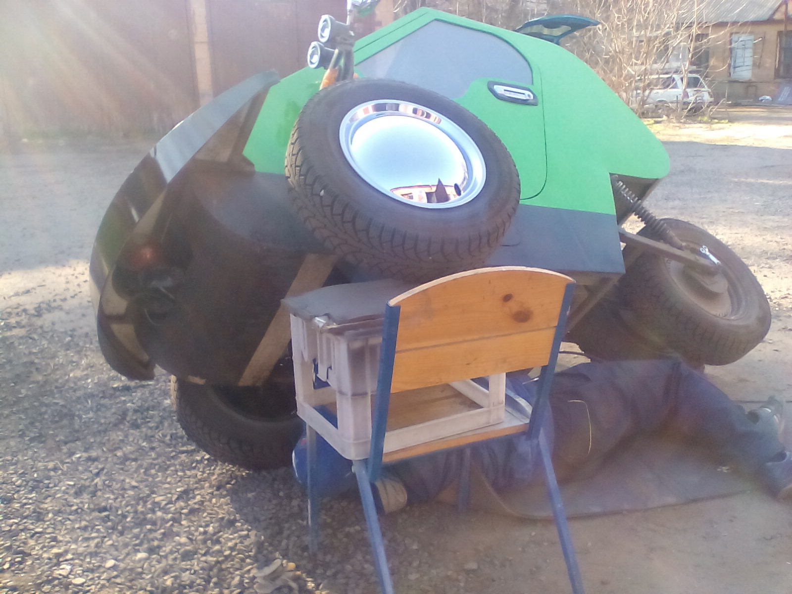 Проект Страйк 2 все это время не был закрыт, а находился в ожидании появления времени на его производство. Сейчас у меня появилась возможность начать постройку Страйка 2. Никаких изменений в конструкцию внесено не было, все как и планировалось ранее, упрощенный вариант Тойота айроад. Передние колеса на маятниках, параллельно кузову, заднее колесо рулевое, независимая подвеска всех колес, полный привод. Три мотор колеса номиналом по 1000 Вт, обутых в жигулевскую резину. Сегодня сварили две боковины кузова.