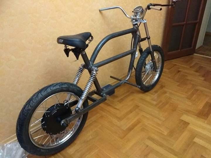 Собрали электробайк на заказ, мотообода, мотоспицы, мотошины 2.75 на 17, мотор эвел 1000 вт, в проекте контроллер Келли 7212, батарея 80 вольт 25 ач. Недорогой, очень приятный в ходу аппарат.