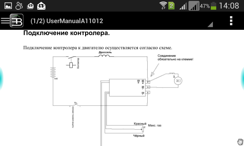 И ещё... в инструкции к контроллеру от Романтика дроссель подключен одной стороной к контактору по +, а второй вывод на B+(M+) клемме контроллера.