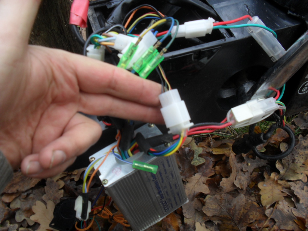 Вилка там действительно муляж.Проводов много лишних с контроллера там потому что должна подключаться сигнализация и освещение с поворотами.Разьемы там нестандартные совершенно.Круиза там скорее всего нет,это что то другое.У меня аппарат немного не такой,двиг 1квт и контроллер 30А.
