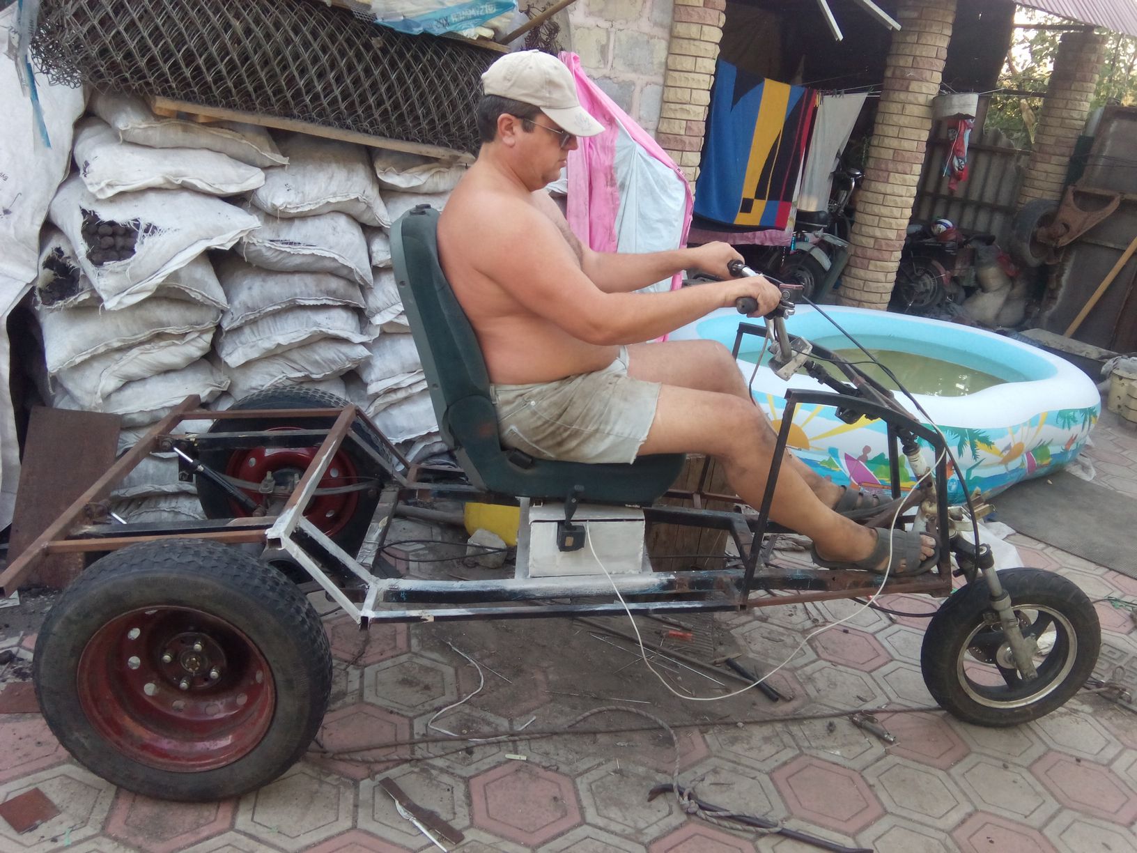 Крыша будет ,это только прикидка.сейчас разобрал,зачищаю раму и переделываю переднюю вилку. Сзади будет ещё широкое сиденье.