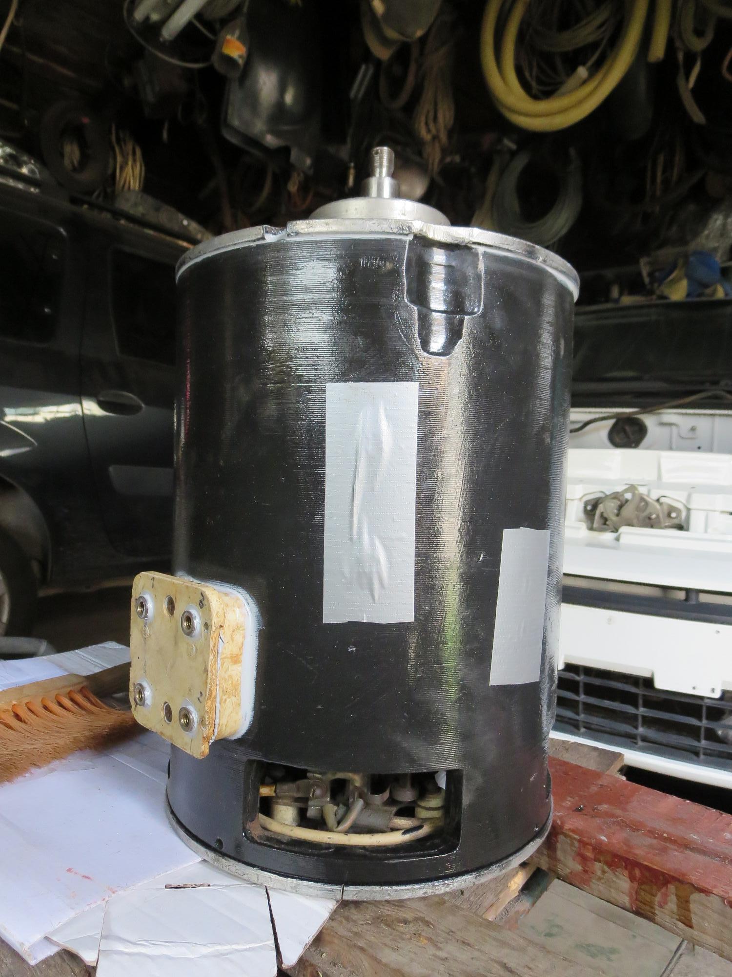 Отдельно отмечу, что внутреннюю полость мотора и клеммную коробку постарался максимально герметизировать. Для герметизации клемм согнул из жести коробочку по размеру крышки клеммника двигателя и этой же крышкой прижал к корпусу. Все щели прошел силиконом. Провода завел через гермовводы. Для окон в корпусе двигателя так же изготовил лючки из жести. Теперь теоретически, даже ныряние в лужу мне должно быть не страшно.