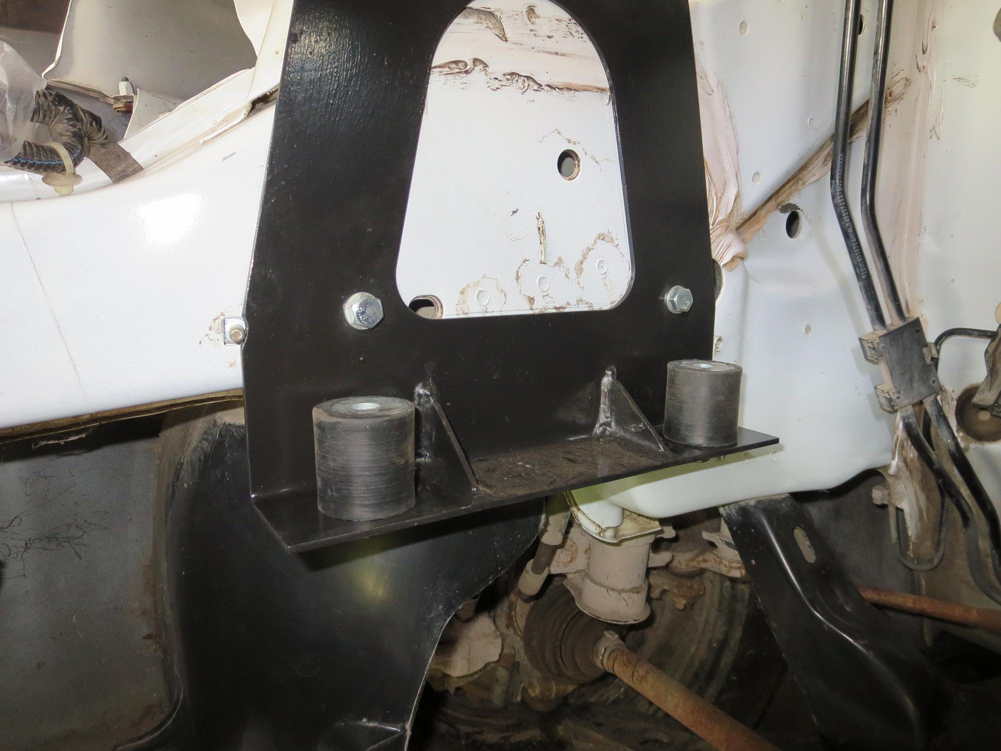 Между кронштейнами в дальнейшем установил два резиновых виброизолятора 40х40 (используются для монтажа вентиляторов, кондиционеров и пр.). То есть, мотор с коробкой крепятся к кузову через резиновые элементы, как и положено.