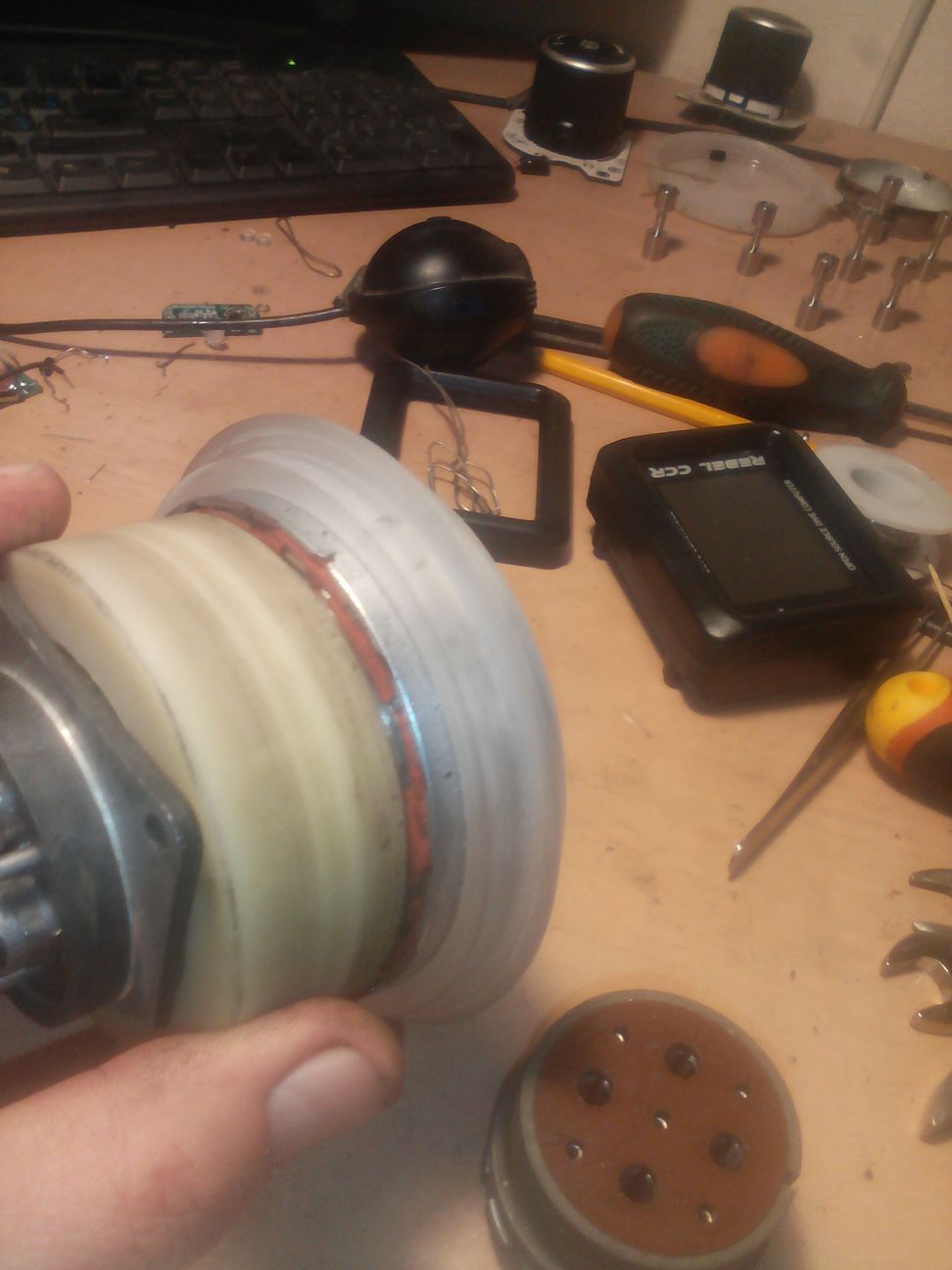 будет выточен,грубо говоря пластиковый цилиндр(ручка ) к штекеру...ну на ней понятно колечко резиновое.чтобы под дождем вода не попадала в разъем.