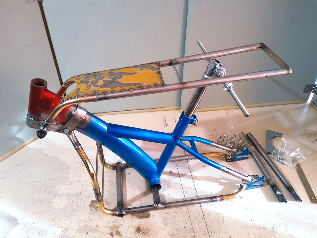 Вообще, изначально весь проект задумывался как экспериментальный, но за два года езды в самых разнообразных условиях, велик на этой раме настолько себя оправдал, что необходимость в постройке аналогичной конструкции "с нуля" отпала. Я так доволен получившимся минибайковским форматом, что реально словами не передать