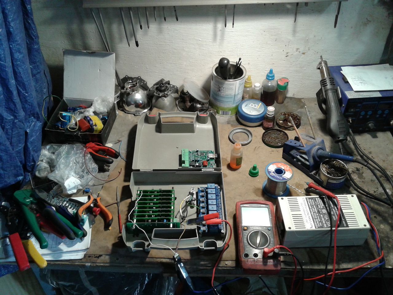 Сегодня начал монтировать BMS и PowerWatcher в корпус. 4 реле будут включать/выключать зарядники по команде BMS, остальные 4 релюх пока свободные. Управление минусом, можно приспособить на управление от микроконтроллера: охлаждение батарей, мотора и т.д.
