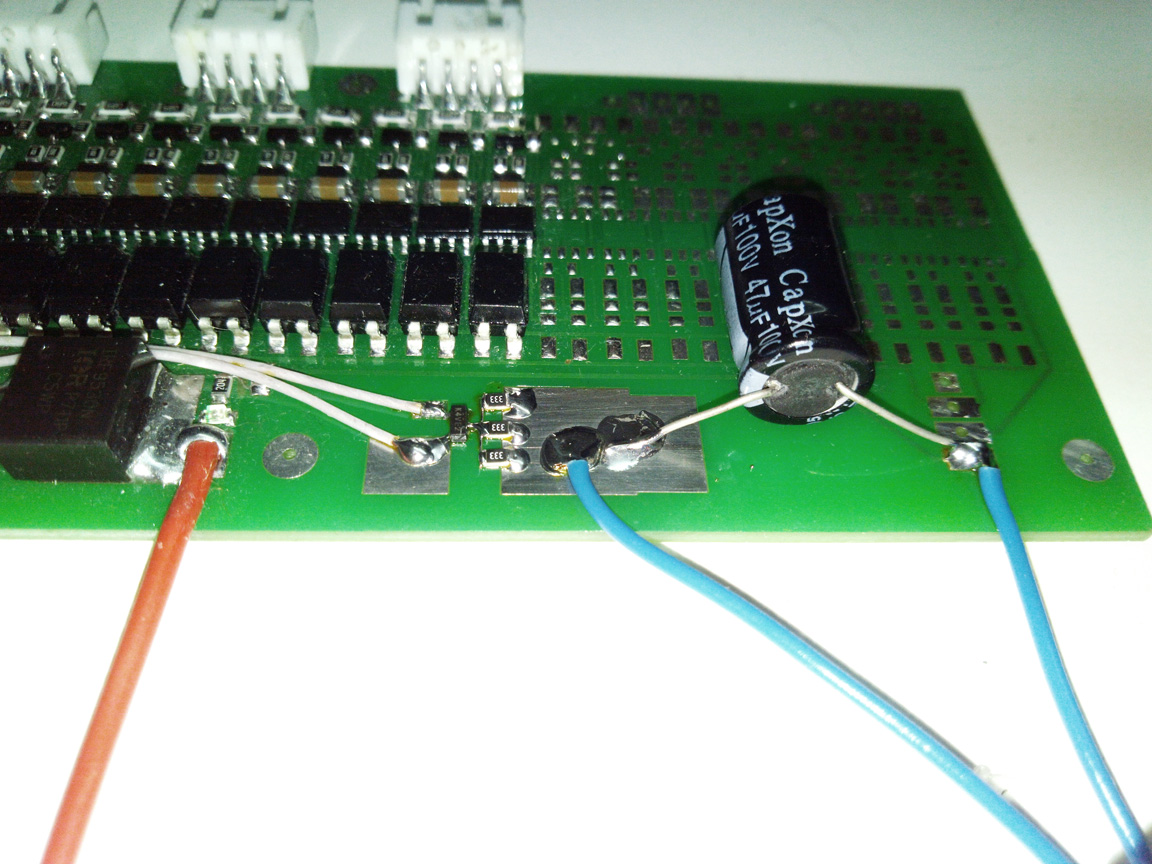 - балластный резистор с рассчета на ток 5мА: примерно 600 Ом на каждую ячейку батареи (например 16S - это 600*16=9600 Ом, подойдет на 9,2-10кОм) мощностью 1Вт (при 70 и ниже В можно 0,5Вт)