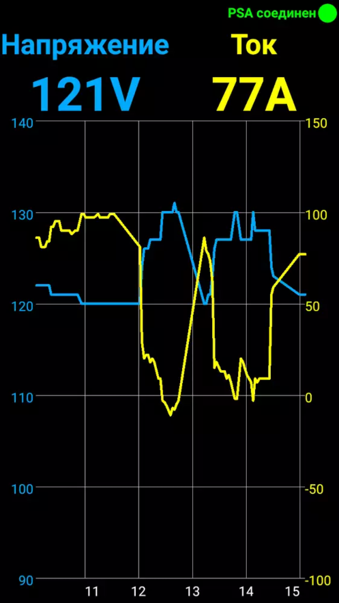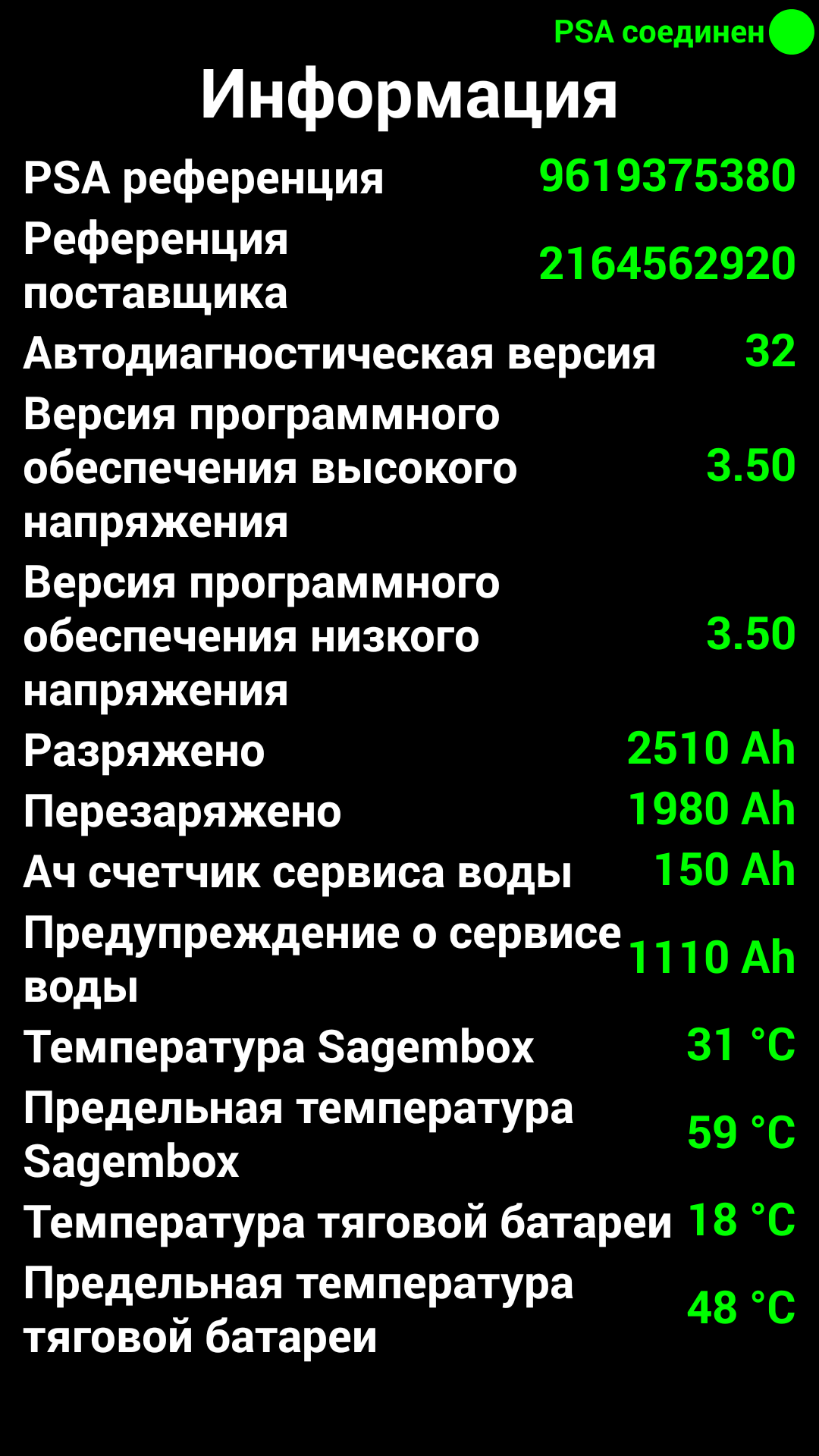 напряжение бортовой батареи и уровень заряда, а к графикам напряжения и силы тока на зарядке добавилось показание и график температуры ВВБ (по сути ЖО).