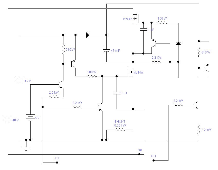 Номинал затворных емкостей от фонаря (лень выпаивать) и сопротивление шунта то же, названия фетов тоже от фонаря.