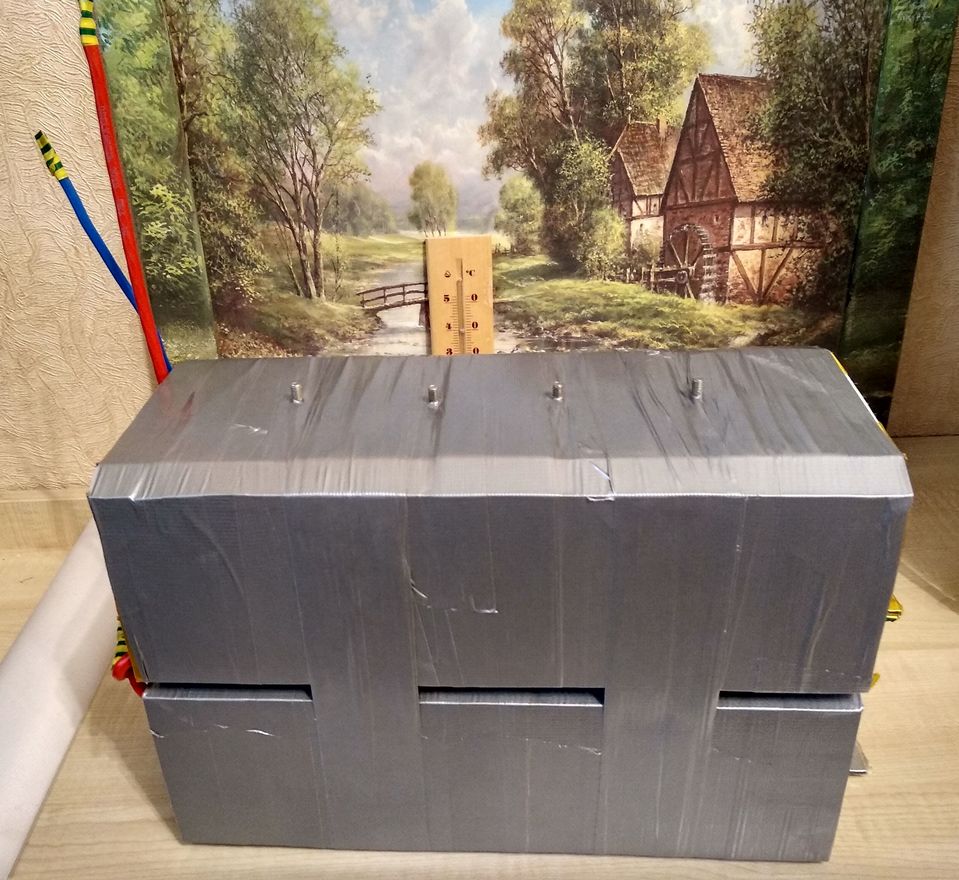 Каждый пакет предварительно проматывался скотчем. Потом прикладывался на двусторонний скотч и приматывался поочередно (то скотчем то армоскотчем) к остальной батарее.