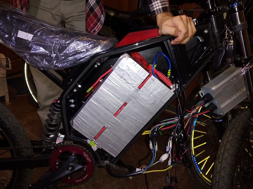 Enduro Adrenaline без акумулятора. Думали с чего собрать акум, был выбор, 18650 или пакеты... Решили собрать акумулятор на LG пакетах 40Ah, 20S. Их как раз Lu4 по хорошой цене организовал. Тем более они узкие, около 10см, как раз то что надо для пространственной рамы электровела.