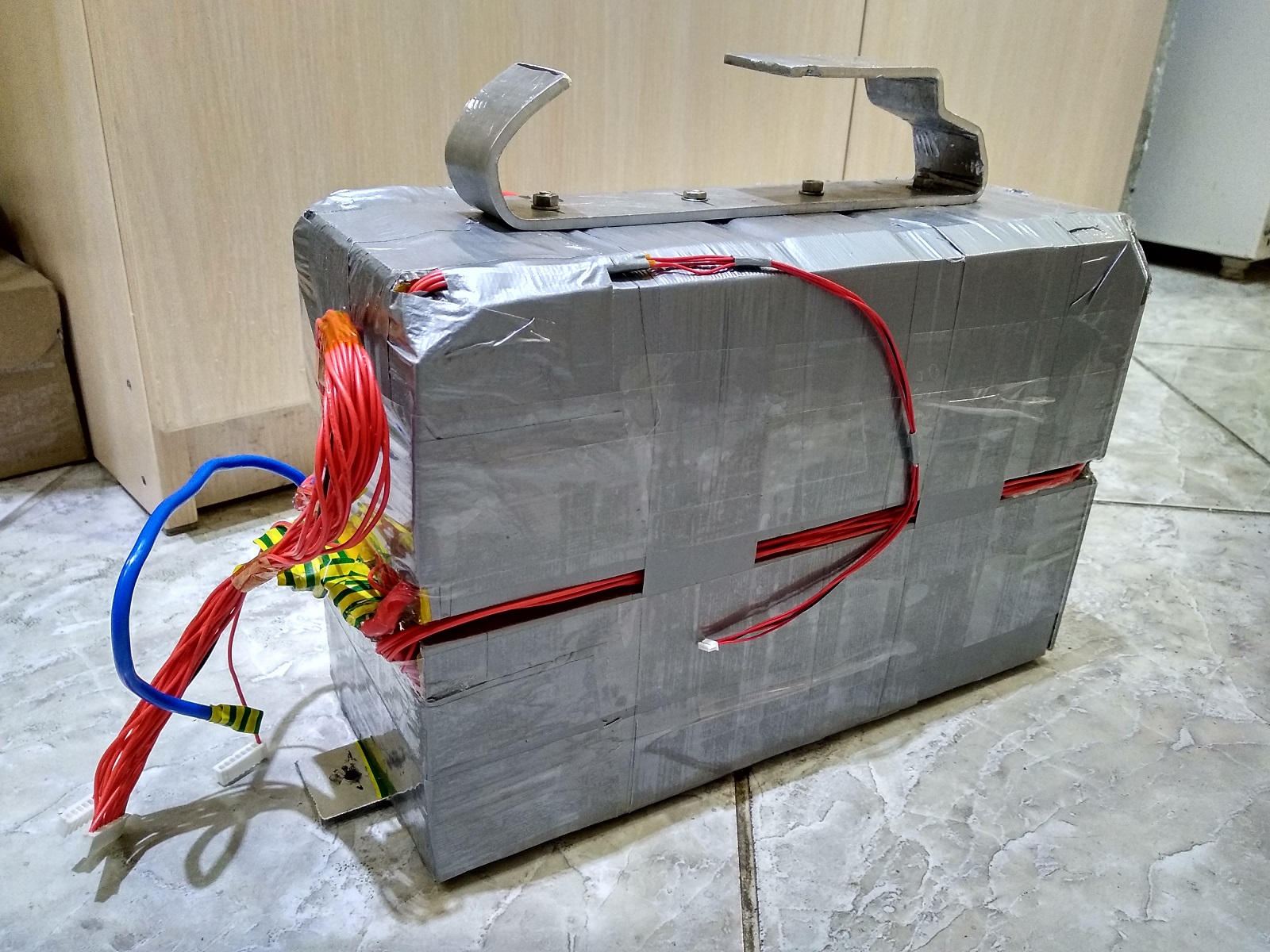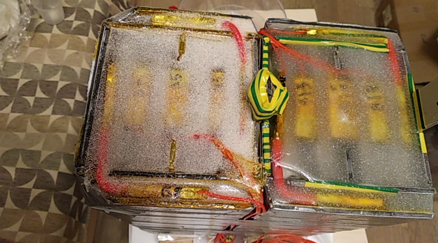 Каждый пакет предварительно проматывался скотчем. Потом прикладывался на двусторонний скотч и приматывался поочередно (то скотчем то армоскотчем) к остальной батарее.